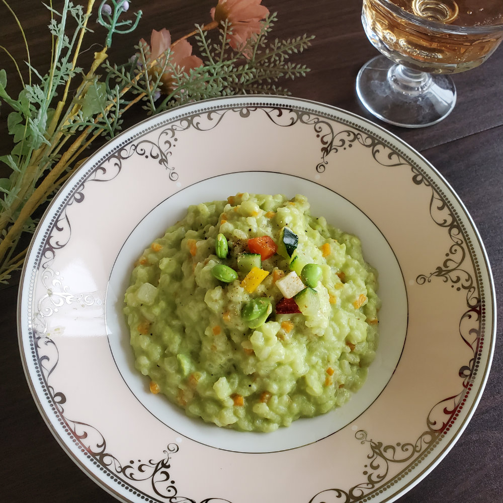 枝前のクリームリゾットは、私の得意料理のひとつです。もうちょっとお高いワインのときに作りたかったのですが、どうしても食べたかったので作りました。枝豆の風味とバターのコクだけのシンプルな味。やや辛、やや甘のロゼとよく合います。
