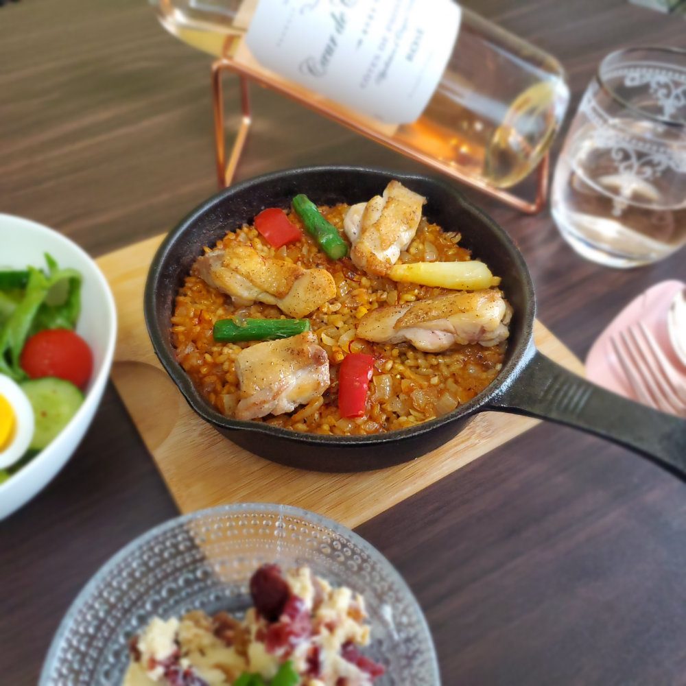 おひとりさまは15cmスキレットで鶏肉のパエリアをビーチク(備蓄米)で作る