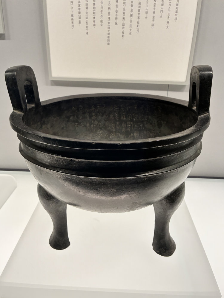 下は颂鼎(Sòng dǐng)という肉を煮る器です。西周時代(紀元前827年~前782年)のものです。紀元前827年ですよ、すごいですね。このころ、日本ではまだ文字はなく、西日本では稲作が始まり、ぼちぼち弥生時代って感じです。