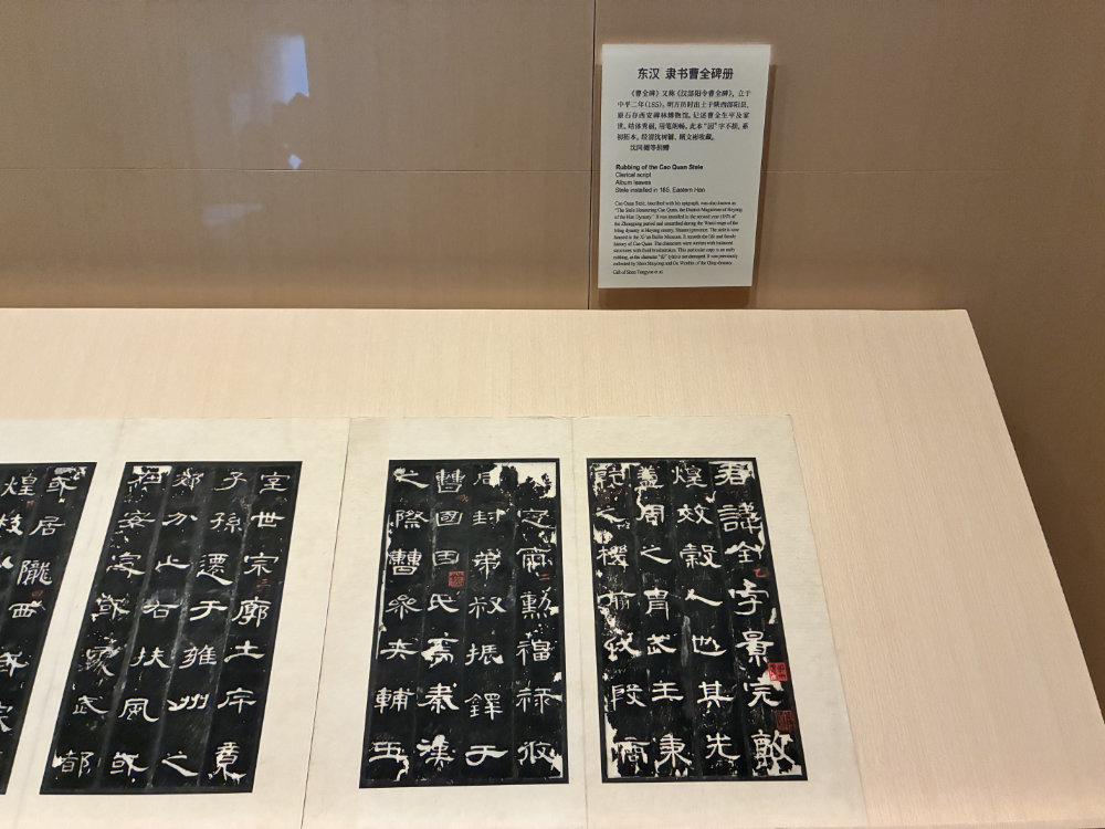 これは曹全碑の拓本です。曹全碑は漢中太守の曹全を讃えるために建立されました。東漢時代の隷書の名作ですが、作者は明らかになっていません。